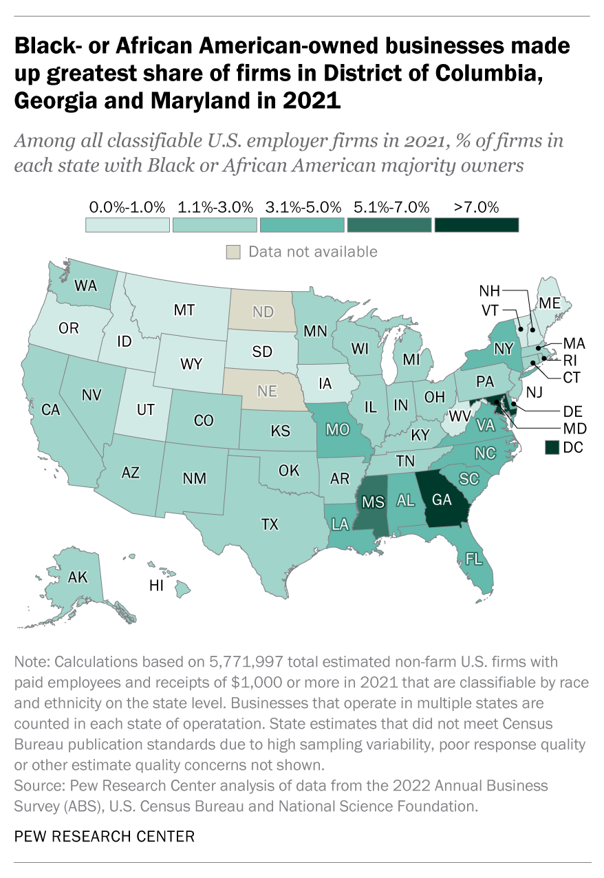 Hard agree! And: I suspect perpetual purpose trusts and employee ownership trusts might be particularly useful in a state with the second-highest concentration of Black-owned businesses, two-thirds of which have fewer than ten employees (see graphic). ESOPs generally don’t make sense for companies that small. Worker cooperatives involve a concurrent transition to more democratic decision-making that small business owners aren’t always ready for.